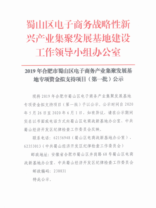 热烈庆贺龙图腾获2019年合肥市蜀山区电子商务产业集聚发展基地专项资金拟支持项目(第一批)