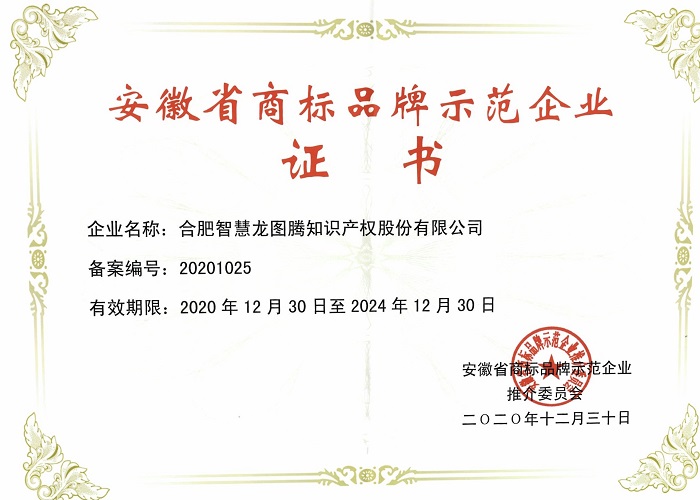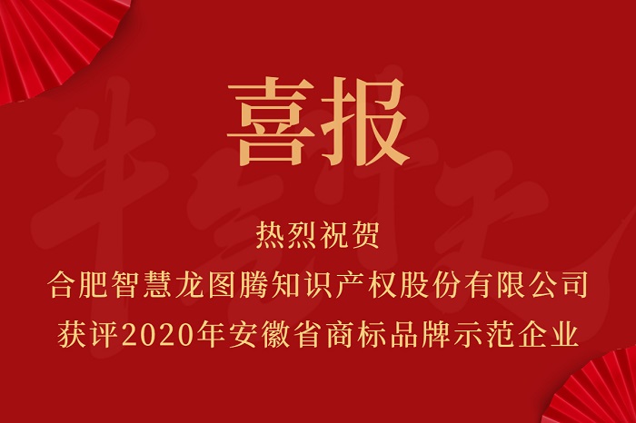 经安徽省商标品牌示范企业推介委员会认定,合肥智慧龙图腾知识产权股份有限公司被授予“安徽省商标品牌示范企业”荣誉称号!