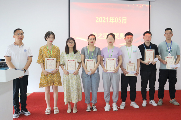 2021年6月9日上午,龙图腾公司2021年05月龙之星表彰大会分别在高新区和蜀山区办公室成功举办。出席此次表彰大会的主要领导有公司总经理刘光、副总赵萍及全体员工。