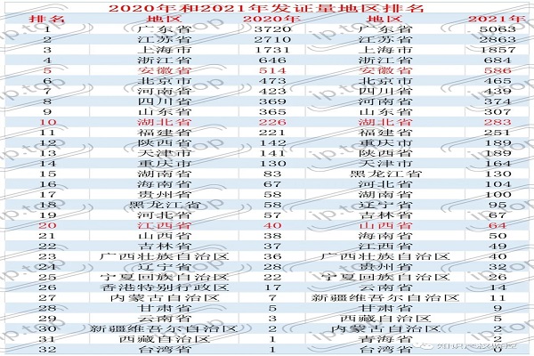 我国《集成电路布图设计保护条例》于2001年10月1日起施行,在实施当天上海复旦微电子股份有限公司提交了名称为:FM1008 8KCPU卡电路的集成电路布图设计,该申请于2001年12月07日公告,登记号为:BS.01500001X,公告号为1;截止至2021年12月31日,我国集成电路布图设计累计发证52259件,从2019年开始出现爆发式增长,近3年的累计发证量占总量的60.7%;累计发证量排名前五的地区依次为:1、广东省12171件,2、江苏省8789件,3、上海市8342件,4、北京市2734件,5、浙江省2685件;累计发证量排名前五的权利人依次为:1、美国亚德诺半导体公司943件,2、上海艾为电子技术股份有限公司445件,3、深圳市明微电子股份有限公司282件、4、上海复旦微电子集团股份有限公司248件,5、上海贝岭股份有限公司246件。以上数据来源龙图腾IPTOP知识产权平台的集成电路栏目。